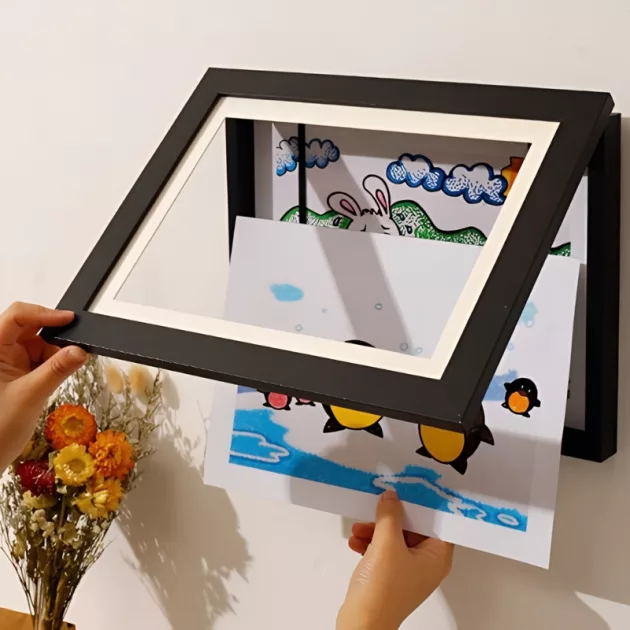 To de meesterwerken van je kind met het Kidzly magnetisch frame. Het opent moeiteloos, zodat je tekeningen in enkele seconden kunt verwisselen. Het slanke ontwerp past in elke kamer en houdt de aandacht op hun creaties. Kinderen zullen het geweldig vinden om hun werk thuis te zien schitteren.