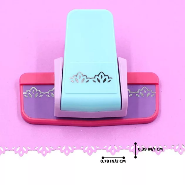 Het handvat is perfect voor mijn kleine handen. Ik vind het leuk om te zien hoe verschillende papierkleuren eruitzien met elke rand.