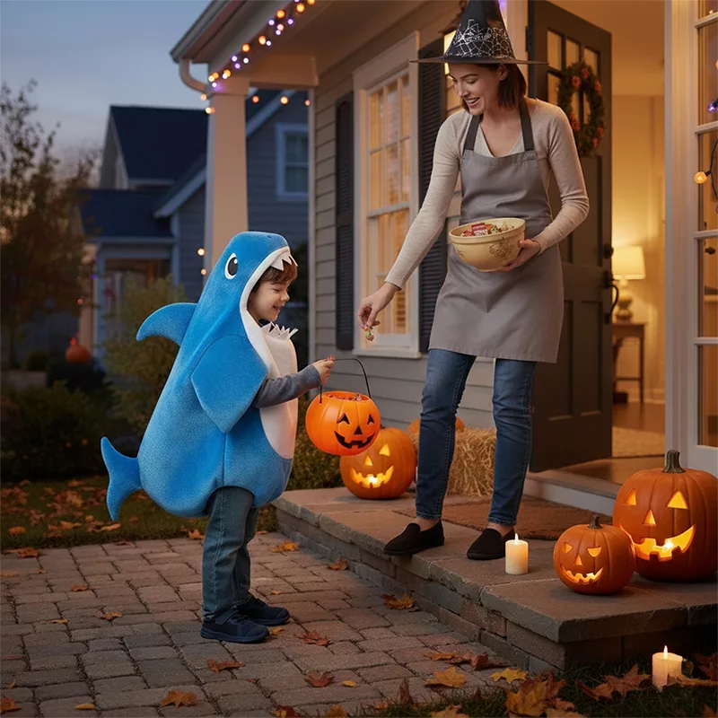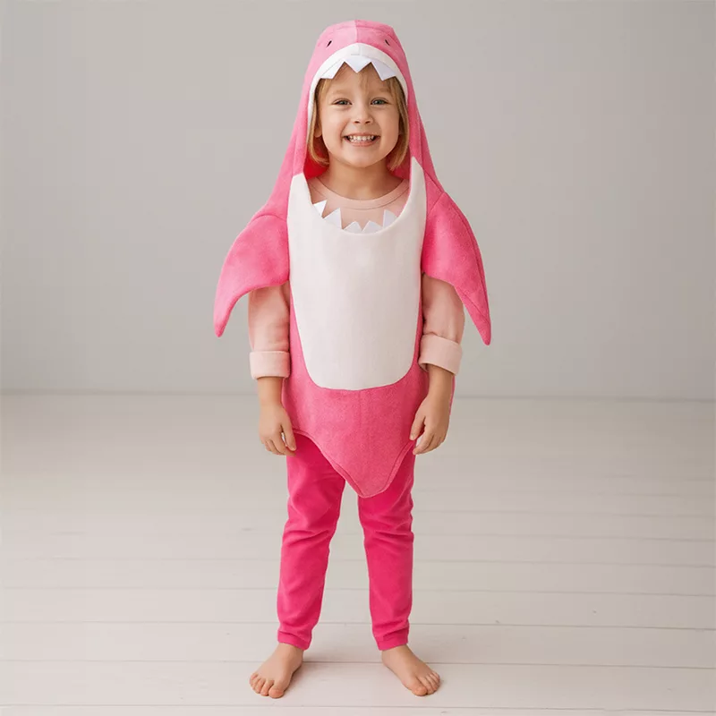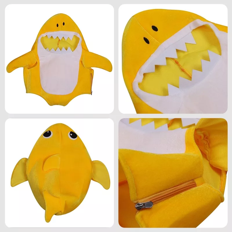 Mijn kind droeg de haai en iedereen op het feestje vond het geweldig! De stof is superzacht en het was heel makkelijk aan te trekken.