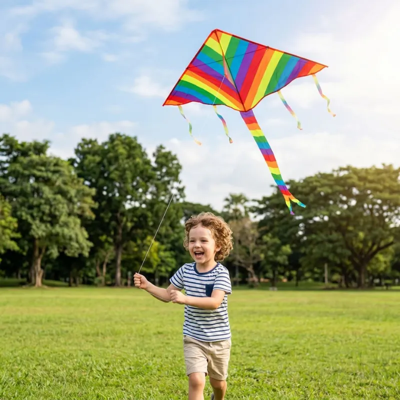 Kleurige strepen dansen boven parken en veranderen simpele wandelingen in iets magisch. Kinderen zijn trots wanneer ze iets moois hoog boven hen laten zweven. Sterke stof kan goed tegen winderige dagen, waardoor speeltijd soepel en zorgeloos blijft.
