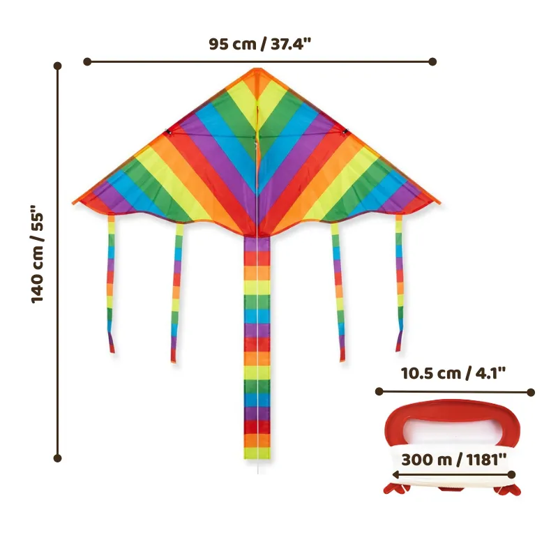Deze regenboogvlieger gekocht voor wandelingen in het weekend en mijn kinderen smeken om langer buiten te blijven. Hij is makkelijk op te laten, blijft stabiel in de lucht en past opgevouwen in onze kleine gangkast.