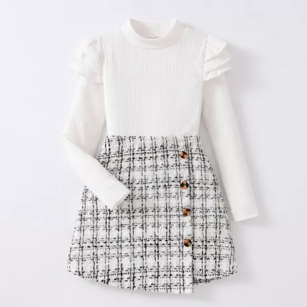 Het geruite rokje heeft een klassieke look waar ik van hou, en de kleur blijft na het wassen mooi. Mijn kind beweegt graag in deze comfortabele set.