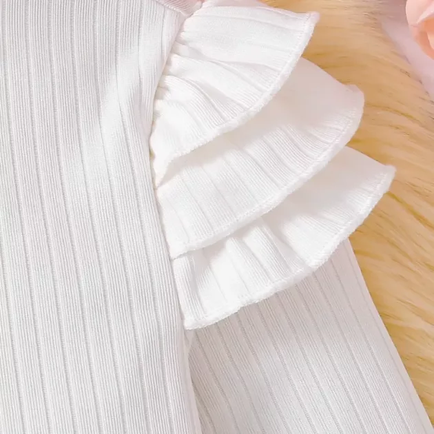 Ik hou van hoe zacht het ruches-topje aanvoelt! Mijn dochter droeg het de hele dag zonder te klagen. Super schattig met het geruite rokje voor school en speelafspraakjes.
