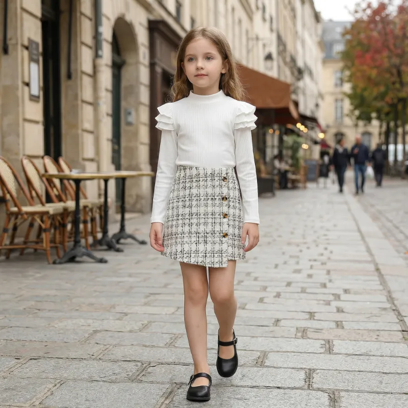 Het geruite rokje heeft een klassieke look waar ik van hou, en de kleur blijft na het wassen mooi. Mijn kind beweegt graag in deze comfortabele set.
