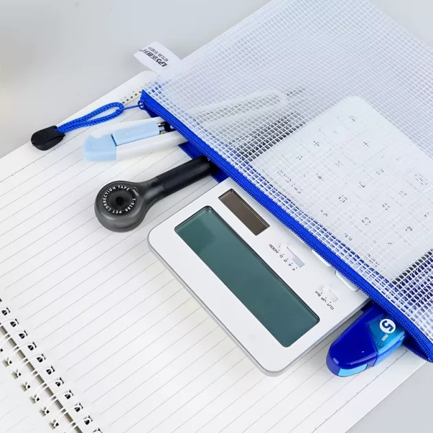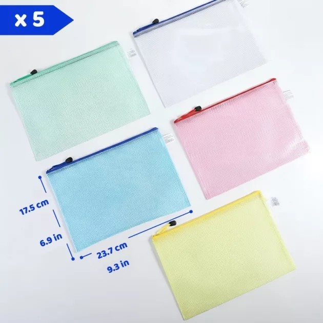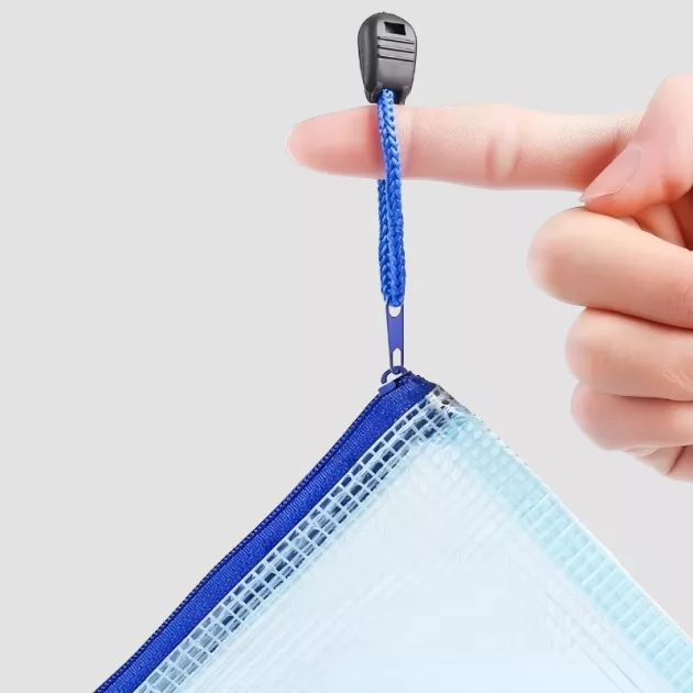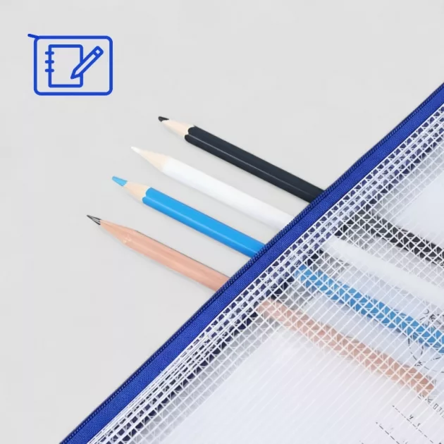 Ik gebruik dit netzakje voor mijn huiswerk en knutselspullen. De doorzichtige zijkanten helpen me om supersnel te pakken wat ik wil. Het scheurt nooit.