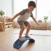 Ik ben verbaasd over hoe veel rustiger mijn zoon is nadat hij het gebogen bord heeft gebruikt. Hij schommelt erop tijdens het lezen en draait het daarna om om eroverheen te lopen als een klein evenwichtsbalkje.