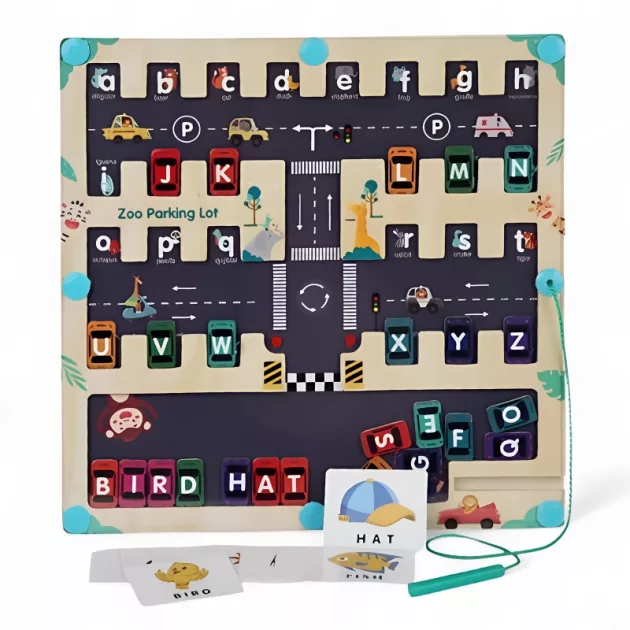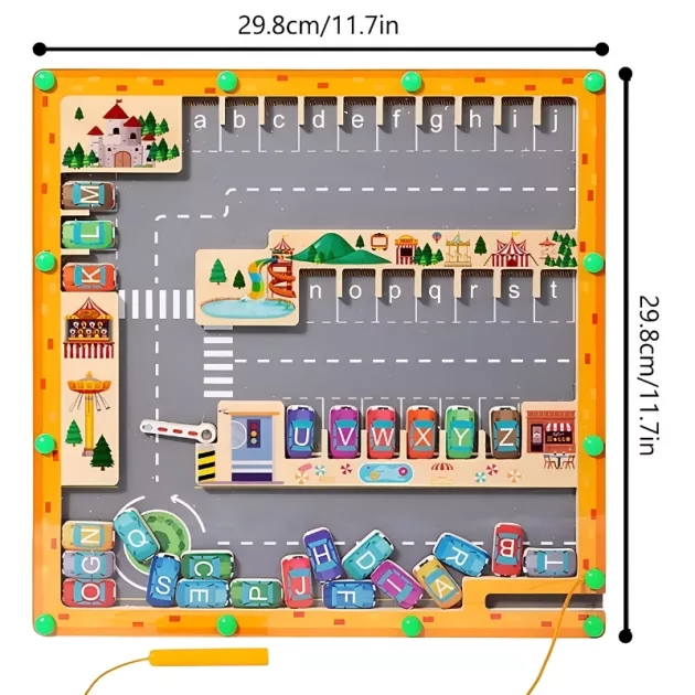 magnetic maze, magnetic alphabet maze, alphabet maze