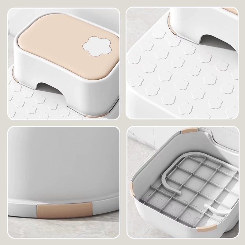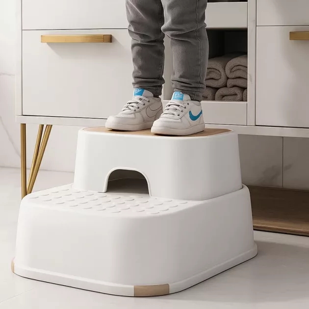Kinderen kunnen overal veilig bij met deze stevige opstap. Uitglijden en wiebelen behoren tot het verleden. Je kind kan zelfstandig handen wassen of tandenpoetsen. Schoonmaken is eenvoudig en jij hebt elke dag gemoedsrust.