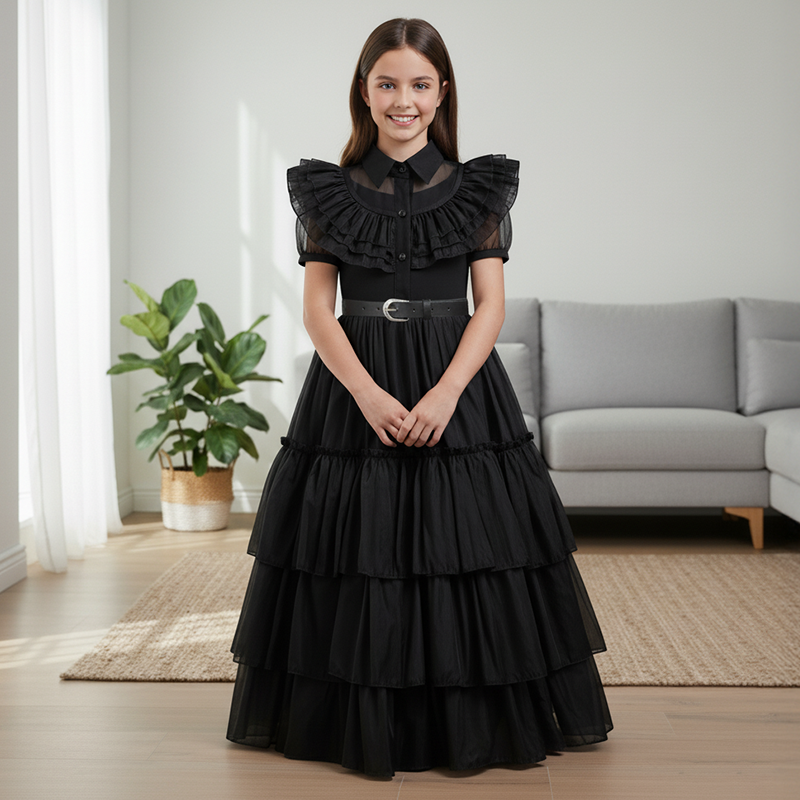Mijn dochter was dol op haar zwarte jurk! Ze draaide de hele middag rond en klaagde geen moment. Superzacht en maakte haar feestje nog specialer.