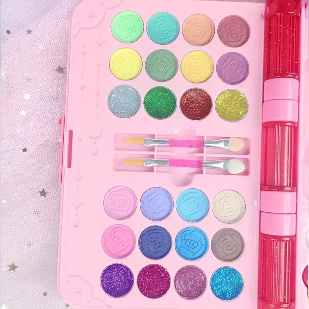 De make-up set is zo kleurrijk! Ik vind het fijn dat alles eraf gaat met een beetje water, en mijn beste vriendin en ik kunnen het zonder zorgen delen.