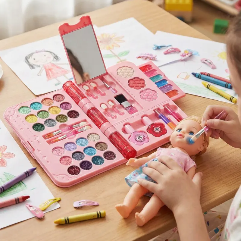 Moedig elke jonge beautyliefhebber aan om hun creativiteit te uiten. Deze make-upset biedt een kleurrijke selectie voor urenlang veilig speelplezier. Elk accessoire is mild en gemakkelijk af te spoelen na gebruik. Zie hoe je kind zelfvertrouwen opbouwt terwijl het nieuwe looks ontdekt thuis.