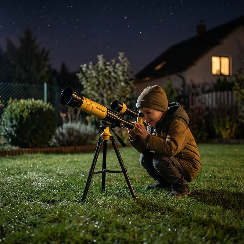 Met deze telescoop kon mijn broertje voor het eerst de ringen van Saturnus zien. Nu neemt hij hem elke avond mee naar buiten—beste wetenschaps cadeau ooit.