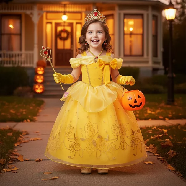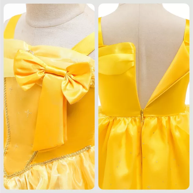 De jurk heeft meerdere feestjes overleefd en ziet er nog steeds prachtig uit! Mijn nichtje voelt zich helemaal Belle en neemt het overal mee naartoe. Zeer indrukwekkende duurzaamheid.