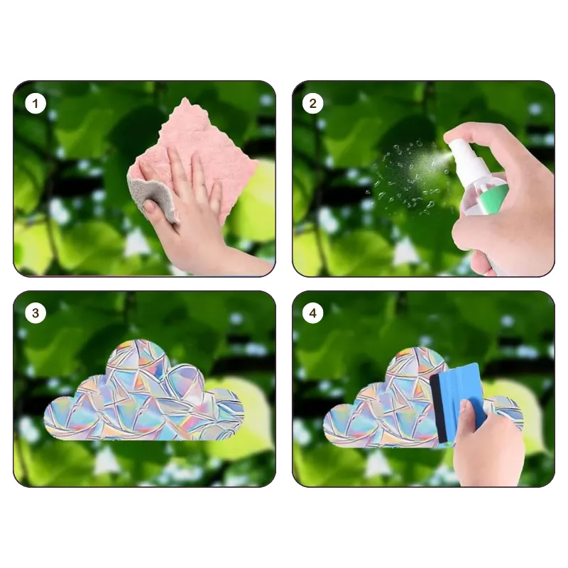 Makkelijk op het glas te plakken en komt eraf zonder rare resten achter te laten. Ziet er prachtig uit als de zon schijnt.