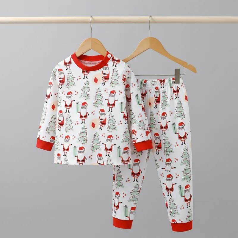 Kerstman Lange Mouw T-shirt en Broek Set Kerstoutfit Katoenen Pyjama voor Kinderen