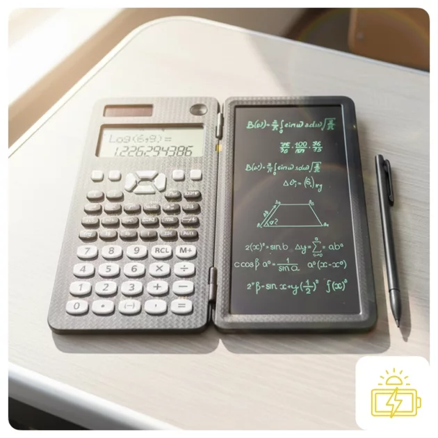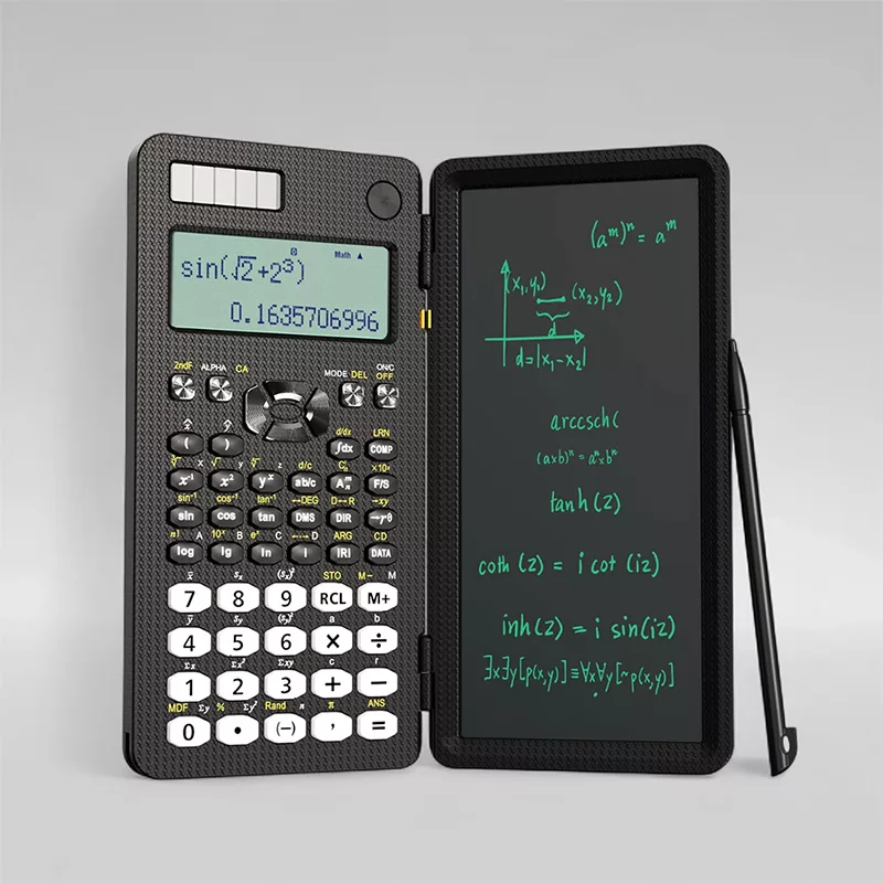 scientific calculator, foldable calculator, solar calculator, calculator with notepad