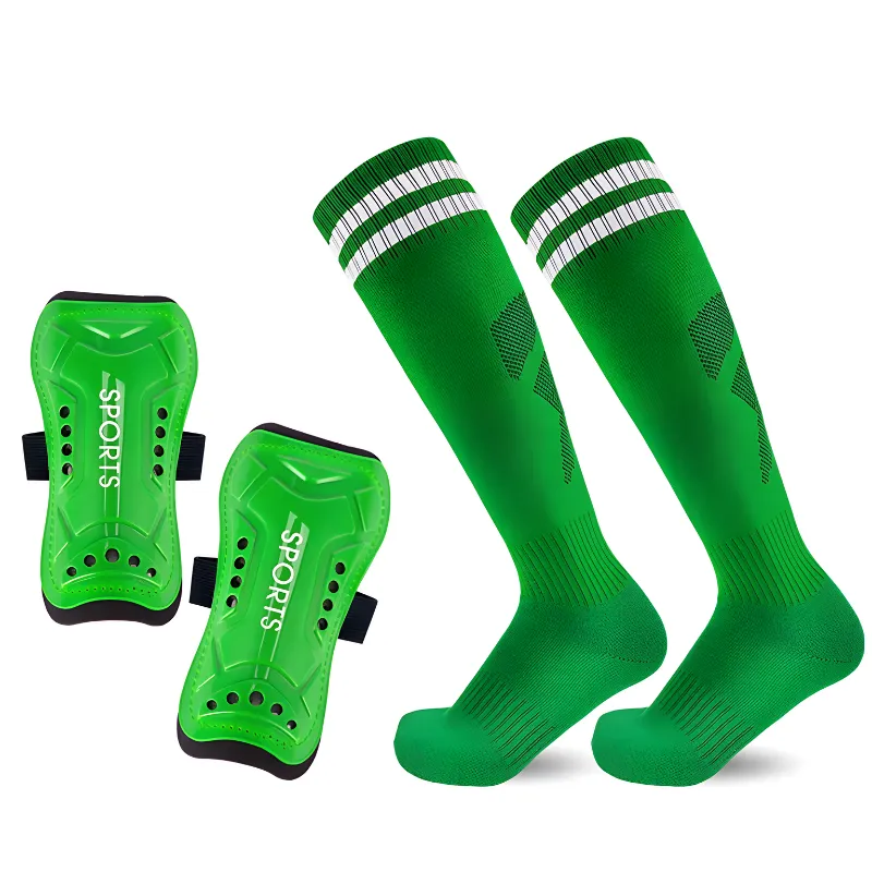 Geef je kind de beste ondersteuning tijdens elke voetbalwedstrijd. Duurzame, flexibele scheenbeschermers beschermen de benen tegen trappen, terwijl ademende sokken de voeten droog houden. Bandjes houden alles op zijn plaats voor zorgeloos rennen en plezier. Laat kinderen vol vertrouwen spelen, in de wetenschap dat ze goed beschermd zijn.