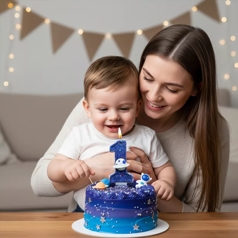 Super coole kaars! Makkelijk te plaatsen en de felle kleuren maakten de taart op elke verjaardagsfoto extra opvallend. Perfect voor ruimtefans.