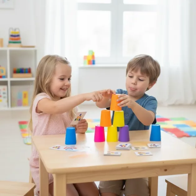 Cognitieve Groei - Kinderen lossen uitdagingen op door kleuren en patronen te rangschikken. Elke ronde versterkt de aandacht, het geheugen en het logisch denkvermogen.