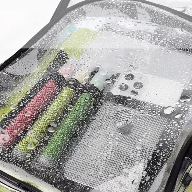 Deze doorzichtige rugzak schoonmaken is super makkelijk. Gemorst sap? Geen probleem. Even afnemen en hij ziet er weer als nieuw uit.