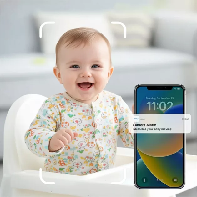 Zie elk moment duidelijk vanaf elke plek via je telefoon. Slaap gerust, wetende dat meldingen je direct waarschuwen als er iets gebeurt. Deel die speciale herinneringen met dierbaren met slechts één tik.