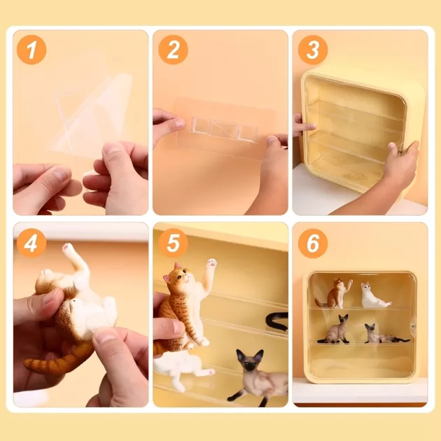 Duurzame acryl constructie - Het solide systeem is bestand tegen barsten en krassen, waardoor het zicht op de tentoongestelde items glashelder blijft. Lichtgewicht maar stevig, biedt uitstekende veiligheid zonder veel gewicht aan de muur toe te voegen.