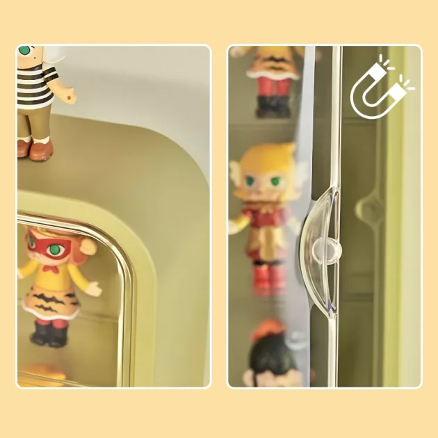 Stofvrije constructie - De afgesloten structuur houdt stof en vuil tegen, waardoor de oorspronkelijke staat van de opgeslagen items behouden blijft. Het gesloten ontwerp vermindert schoonmaakinspanningen en houdt de displays langer vlekkeloos.