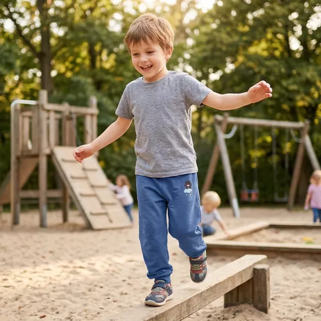 Ik vind het fijn hoe de tailleband zacht zit maar niet afzakt. Mijn kind rolt, danst en hangt op de bank, en de broek verdraait nooit en snijdt niet in.