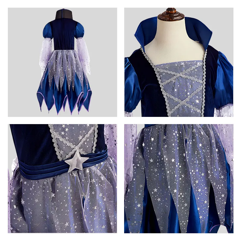 Geef uw kind het vertrouwen om te stralen op elk feest. Sprankelende details en rijke kleuren maken verkleden extra speciaal. Gemakkelijk te dragen met zachte stoffen voor vrolijke speeltijd de hele dag. Elke set bevat een bijpassende hoed, een toverstok en een handige tas.