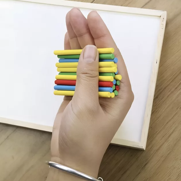 Deze houten stokjes maken rekenen leuk. Mijn kind gebruikt ze elke dag!